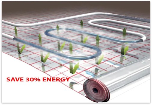 Izmanto silto grīdu iestrādes vajadzībām ar ūdens caurulēm, režģojums palīdz izveidot projekta dimensijas un novietojumu telpās. 130g/m² bieza plēve sillto grīdu cauruļu montāžām faktūru precīzai, ērtākai un ātrākai montāžai 50m² rullī.
