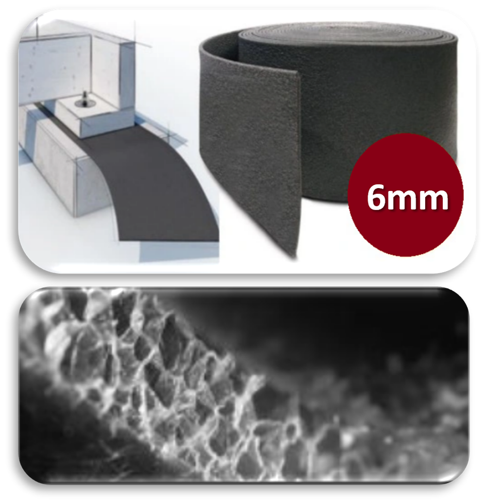 Materiāls ir ūdens vadošs un neļauj tam nonākt konstrukcijā. Vienlaikus darbojas kā kompensējošais elements pamatu un dzegas zonās, paredzot betona lējuma neprecizitātes, attiecīgi tam ir 6mm biezums. Slēgto poru poliolefīna putas nodrošina augstu novecošanās momentu un tās piedāvā arī siltuma saglabāšanu un labu gaisa necaurlaidību iepriekš minētajās zonās. Turklāt ir skaņu viļņu slāpējošs materiāls.
