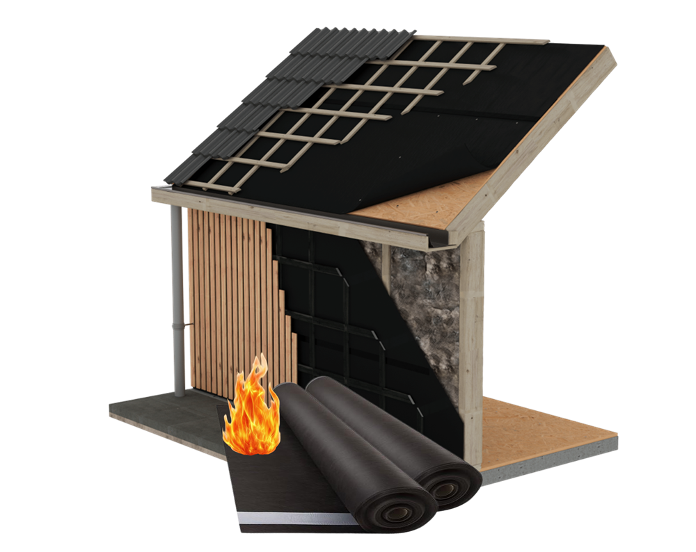 Pilnībā melna 2 slāņu TPU difūzijas membrāna - UV atvērtām fasādēm, ar B uguns klasi, naglu pašblīvēšanos un divām pašlīmējošām malām.